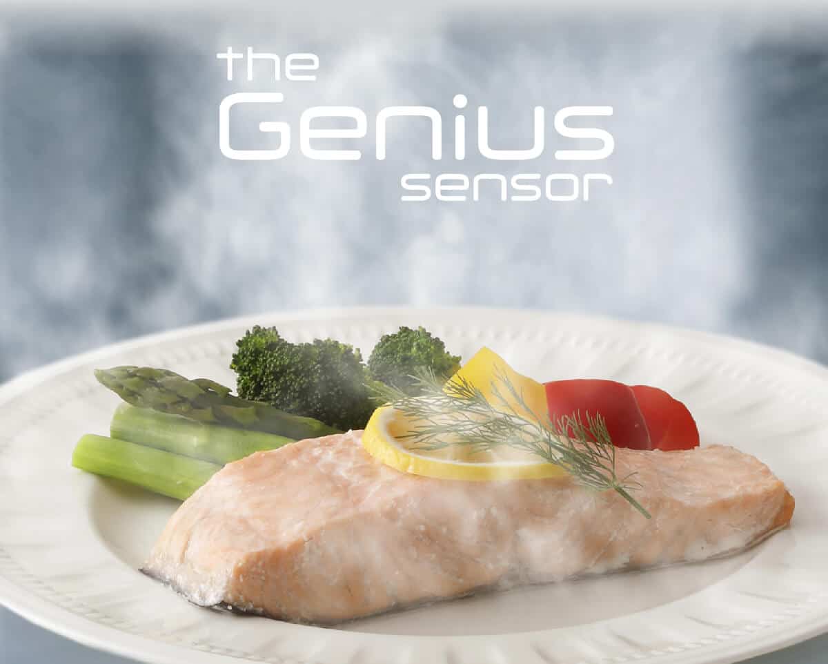 Сенсор Genius определяет внутреннюю влажность блюд и задает время нагрева с учетом количества пара, которое выделится из них при разогреве, что позволяет добиться оптимального результата.