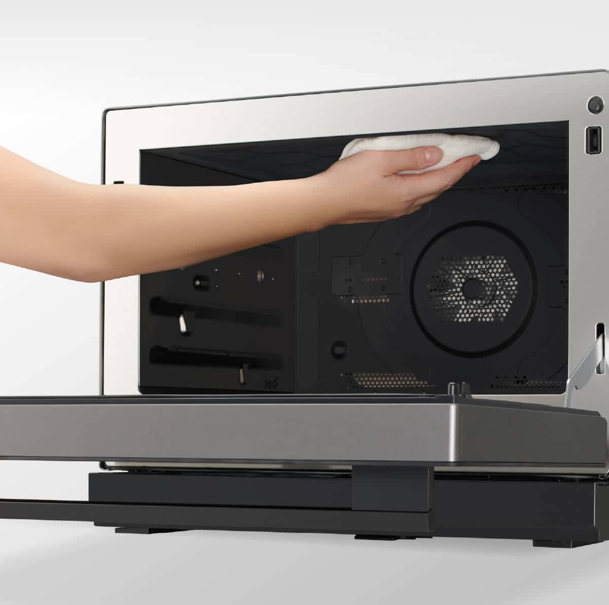 Камера печи выполнена из нержавеющей стали, а программа автоматической очистки с использованием горячего пара выполнит всю грязную работу за вас. Поскольку нагреватель гриля грамотно встроен в камеру, а на рабочей поверхности нет поворотного стола, мойка выполняется без усилий за один проход. Снаружи печь не имеет выступающих кнопок и ручек, что также облегчает ее очистку.Удобный разогрев